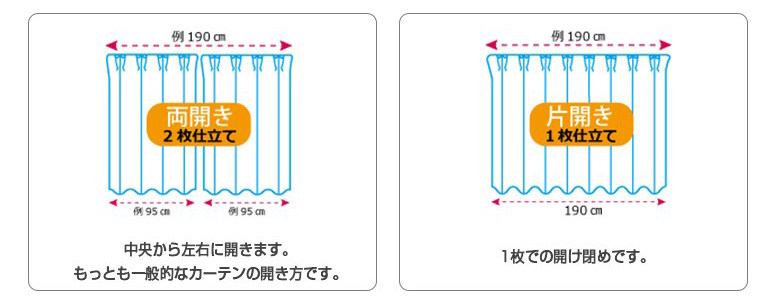 「両開き」をご注文されると、カーテン布は二枚のお届けとなり、