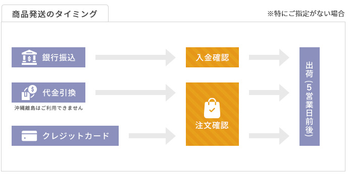※銀行振込の場合は、ご入金確認後5営業日前後となります